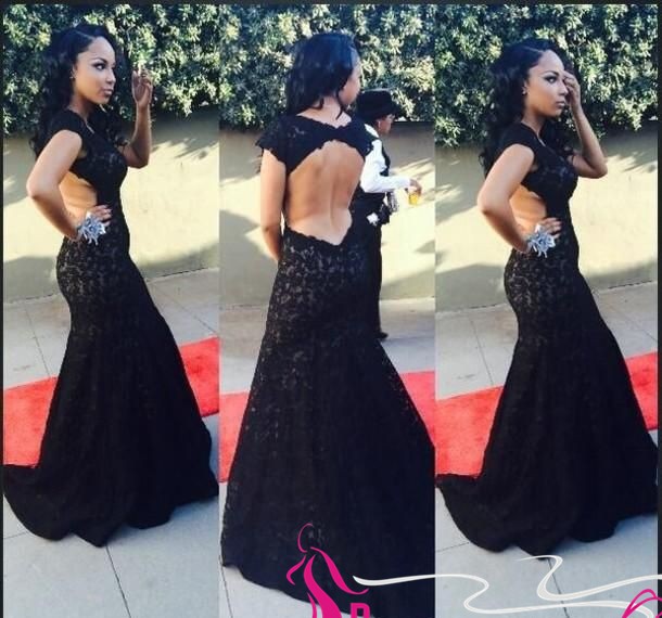 Floor Length Black Lace Mermaid Prom Dresses Open Back pst0047