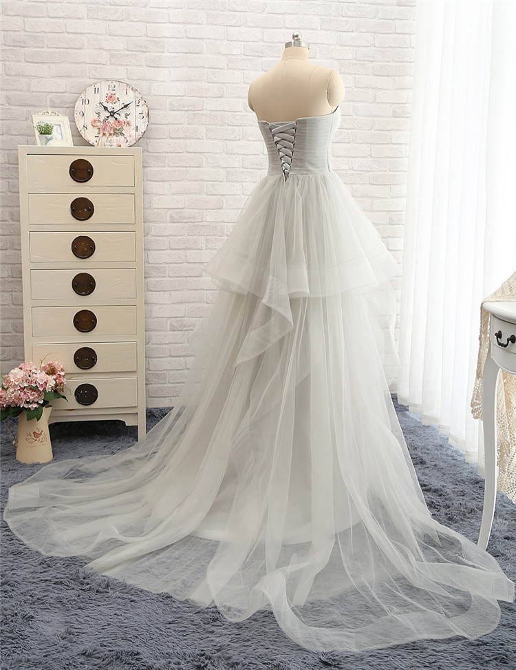Long Tulle Prom Gowns Beaded Waistband Sweethear Neckline Chapel Train pst0048