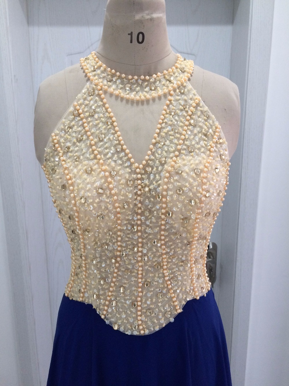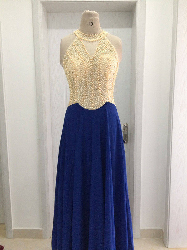 Long Beaded Halter Prom Dresses Celebrity Dresses Party Gowns PG0006