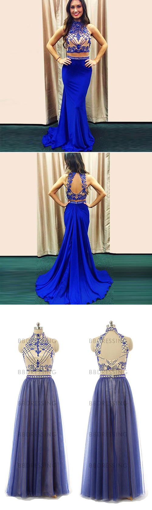Two Piece Beads Prom Dresses Party Gown pst0948