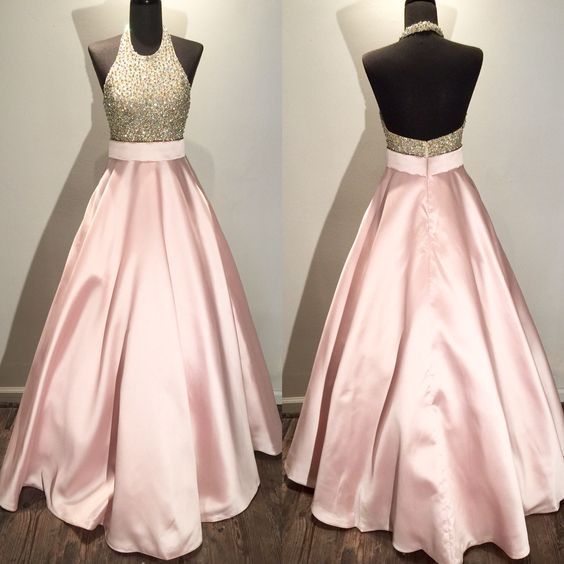 Dusty Pink Prom Dresses Beaded Bodice Party Dresses