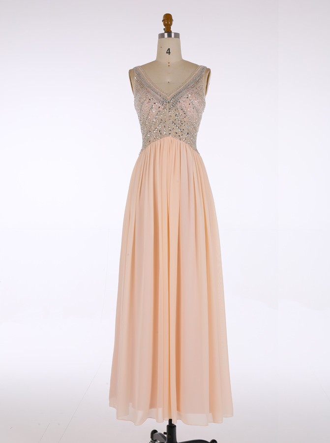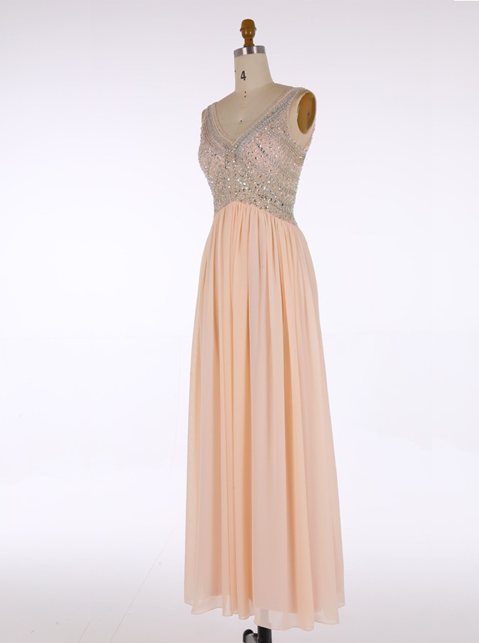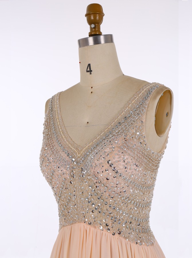 Prom Dress With Beading And Stones Deep V Neckline Evening Gown pst0860